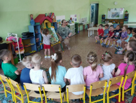 В рамках профилактической операции "Каникулы" через подвижную игру "Воробышки и автомобиль" девчонки и мальчишки 2 младшей группы "Земляничка" закрепляли правила поведения на дороге и на тротуаре.