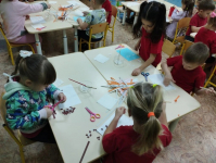 В преддверии Дня матери мальчишки и девчонки средней группы "Земляничка" приготовили подарки для любимых мамочек - нарисовали цветы и выполнили аппликацию "Шляпка для мамы".